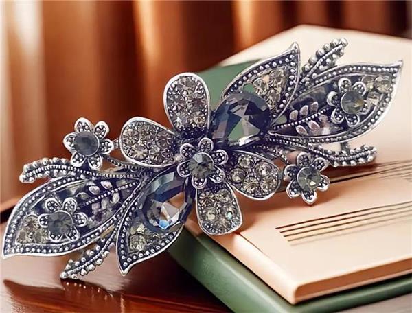 Hajcsat - haj csíptető elegáns egyszerű virágos mintákkal 9×3cm - szürkés árnyalat